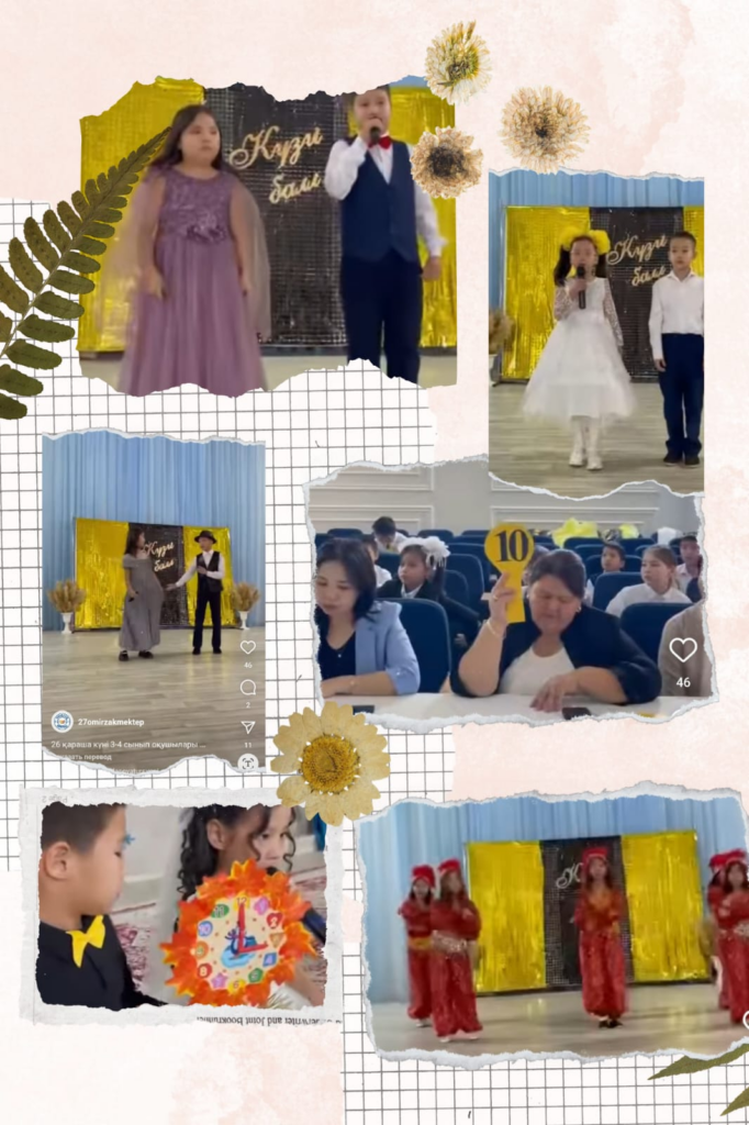 26 қараша күні 3-4 сынып оқушылары арасында “Алтын күз” мерекелік шарасы өтті. Шара мақсаты: балаларды мерекелі,берекелі күзбен таныстыру. Алтын күзге жалпы түсінік беру.Табиғатқа деген сүйіспеншілікке тәрбиелеу.