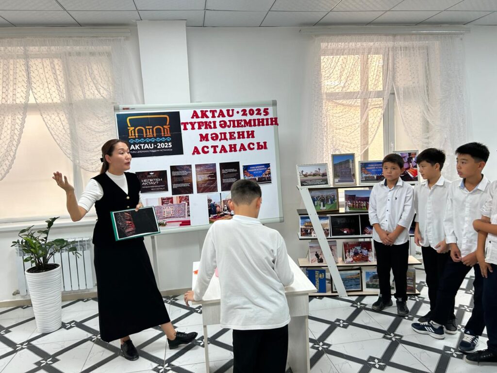 Мектебімізде «Балалар кітапханасы» жобасы аясында AKTAU*2025 ТҮРКІ ӘЛЕМІНІҢ МӘДЕНИ АСТАНАСЫ атты көрме ұйымдастырылды. Мақсаты: мәдени астана болғандағы негізгі мақсат-міндет те сол — бауыр елдерді рухани-мәдени тұрғыда біріктіріп, мәдени-тарихи құндылықтарды насихаттау. Көрме 6-7 сынып білім алушыларына кеңірек таныстырылды. Викториналық сұрақтар қойылып, жауап берген оқушыларға сан бойынша номерленген құпия сыйлықтар ұсынылды. Ұйымдастырылған шараға оқушылар белсенді қатысты.