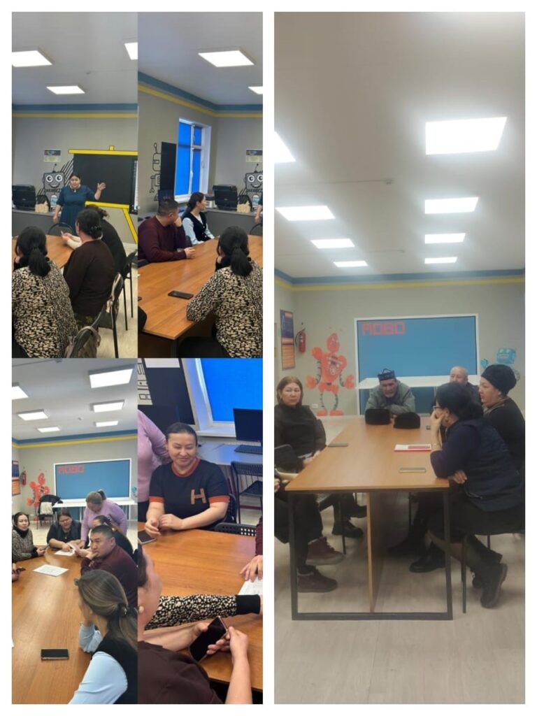 “Ата-аналарды педагогикалық қолдау» бағдарламасының  жылдық жұмыс жоспарына сәйкес 9-11 сынып оқушыларының ата-аналары үшін «Үйден тыс тамақтану» тақырыбында ата-аналар жиналысы өткізілді.
