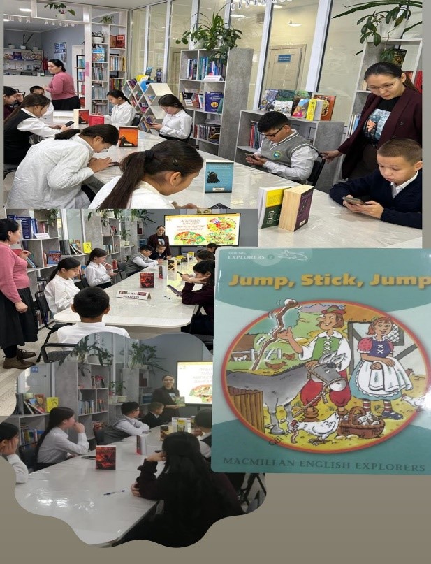 7«Б» сынып білім алушыларына «Оқуға құштар мектеп», «Балалар кітапханасы» жобасы аясында «Барлық пәндер арқылы оқы» бағыты бойынша Ағылшын тілі пәнінің мұғалімі Ж.Сатыбалдиевамен бірлесе отырып, ағылшын тіліндегі көркем әдебиеттерге қызықтыру мақсатында байқау ұйымдастырылды. Алдын ала байқауға қатысушыларға Луис Фидженің «Jump, Stick, Jump» кітабы оқуға ұсынылып, I кезеңде осы «Jump, Stick, Jump» кітап бойынша Google форма арқылы дайындалған тест сұрақтары (30 минут) берілді.