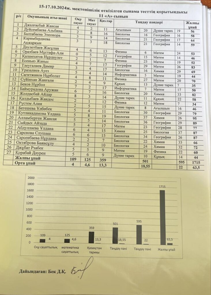 15-17.10.2024ж. мектепішілік өткізілген сынама тесттің қорытындысы