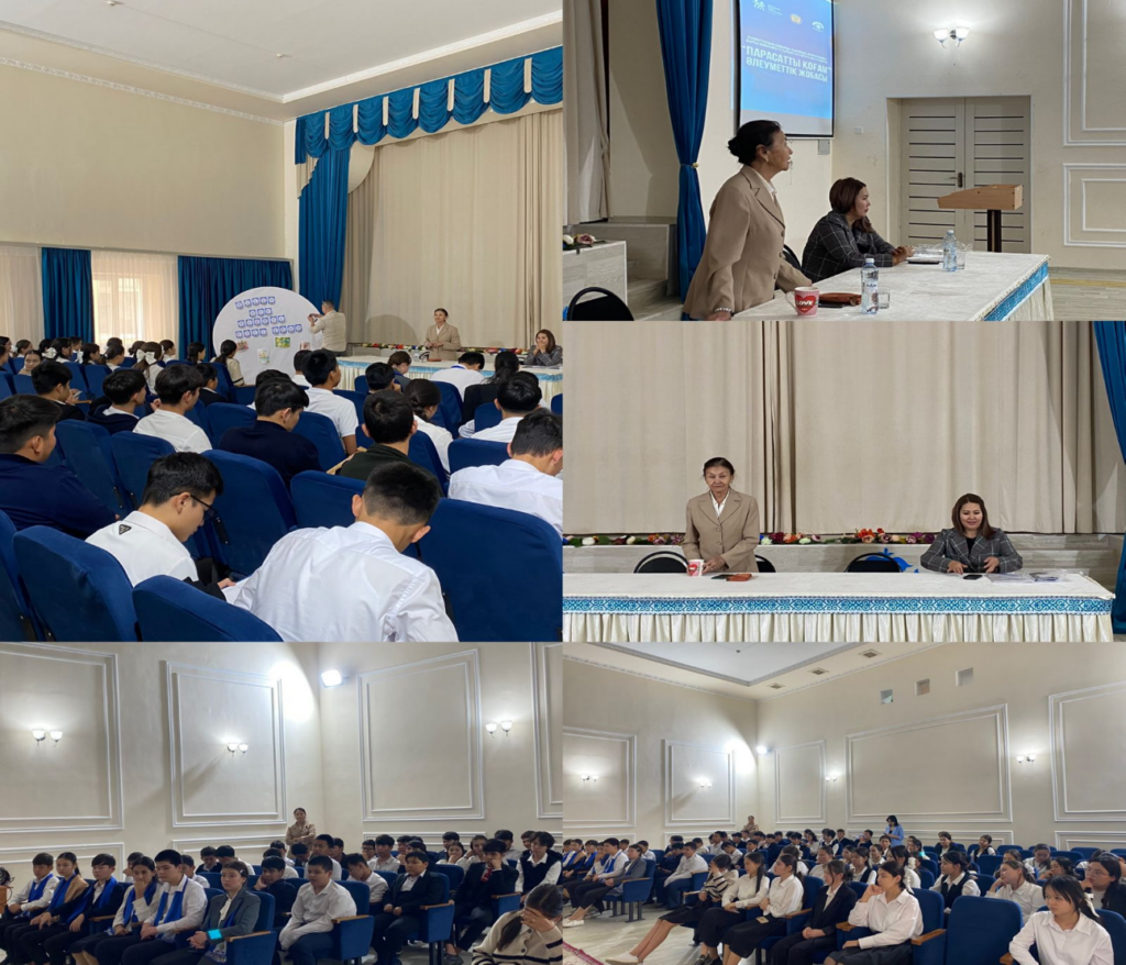 Мектебімізде 02.10.2024 ж. күні 9-11 сынып оқушыларына азаматтардың бойында сыбайлас жемқорлыққа қарсы иммунитетті қалыптастыруға бағытталған «Парасатты қоғам»әлеуметтік жобасын аясында Жалғасбай А.Т.-«Маңғыстау -Адалдық алаңы»жобалық кеңсесінің мүшесі,ардагер ұстаз және Шамшадинова А.А. «Шуағыңды шаш»қоғамдық бірлестігінің төрайымымен кездесу ұйымдастырылды.Кездесуге 75 оқушы және 6 мұғалім қатыстырылды.