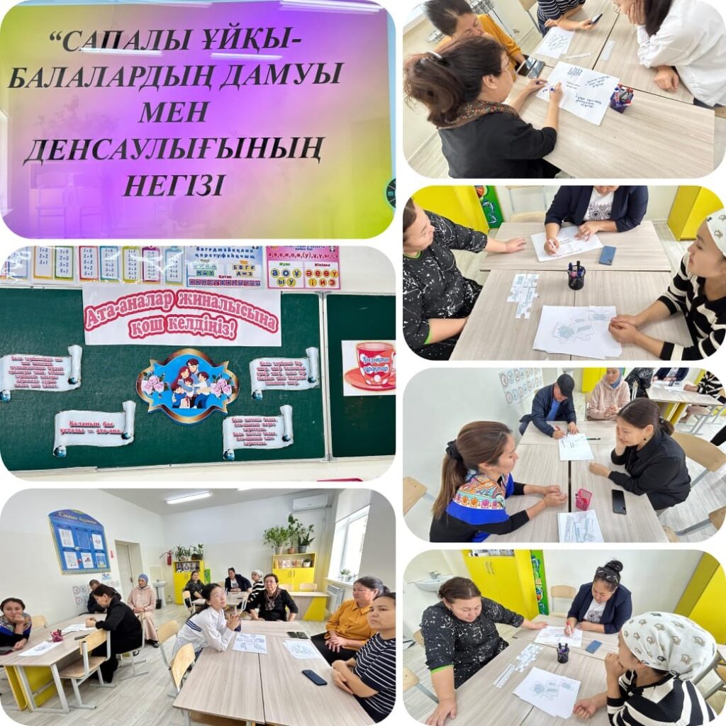 “Ата-аналарды педагогикалық қолдау» бағдарламасының жылдық жұмыс жоспарына сәйкес бастауыш сынып оқушыларының ата-аналары үшін «Сапалы ұйқы: балалардың дамуы мен денсаулығының іргетасы» тақырыбында ата-аналар жиналысы өткізілді.