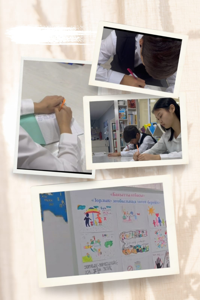Мектебімізде 29.11.2024ж күні« Зорлық зомбылыққа қарсы 16 күн» ақпараттық науқанын өткізу жөніндегі іс-шаралар жоспары аясында, балаларға қатыгездік пен немқұрайлылық мәселесіне қоғамдық назар аудару, қоғамда балаларды қатыгездікке төзбеушілік көзқарасын қалыптастыру, балаларды зорлық- зомбылықтың кез келген түрінен құқықтық қорғау деңгейін арттыру мақсатында, «Зорлық-зомбылықсыз әлем» атты үздік эссе байқауы өтті. #MNG_біргетоқтатайық